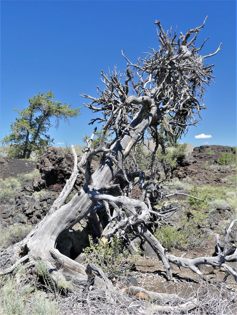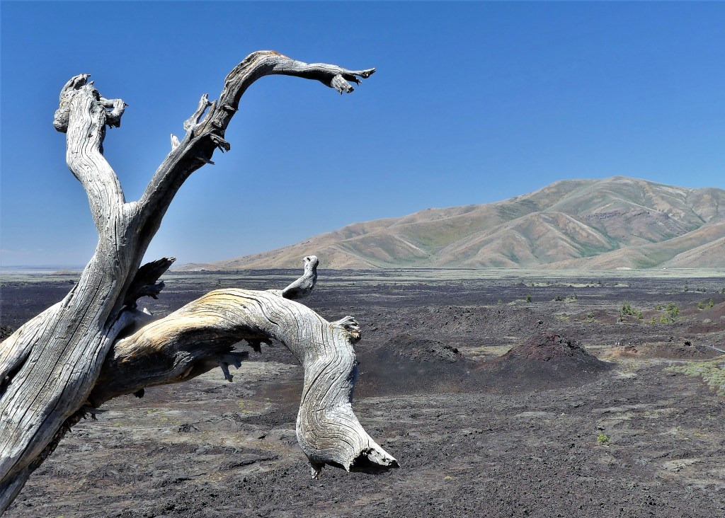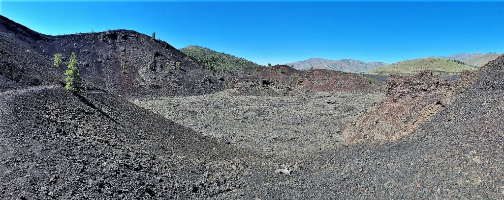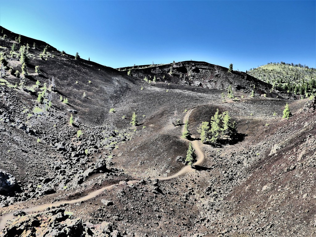 So we set about on foot, through the lava fields on the eastern shore, and walked around the south side of the lake, crossing the McKenzie River…