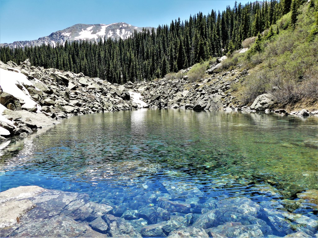 There is a lake in Oregon’s high Cascade Lakes region that was created 3,000 years ago by a lava flow that burned and dammed a forested valley. Then it filled with fresh spring water from Mt. Washington snowmelt and the McKenzie River springhead that percolated up through pumice and lava rock. The water is so pure and cold enough throughout the year that algae has no chance of growing, allowing remarkable visibility–up to 100 feet below the water’s surface. Hence, the name Clear Lake.