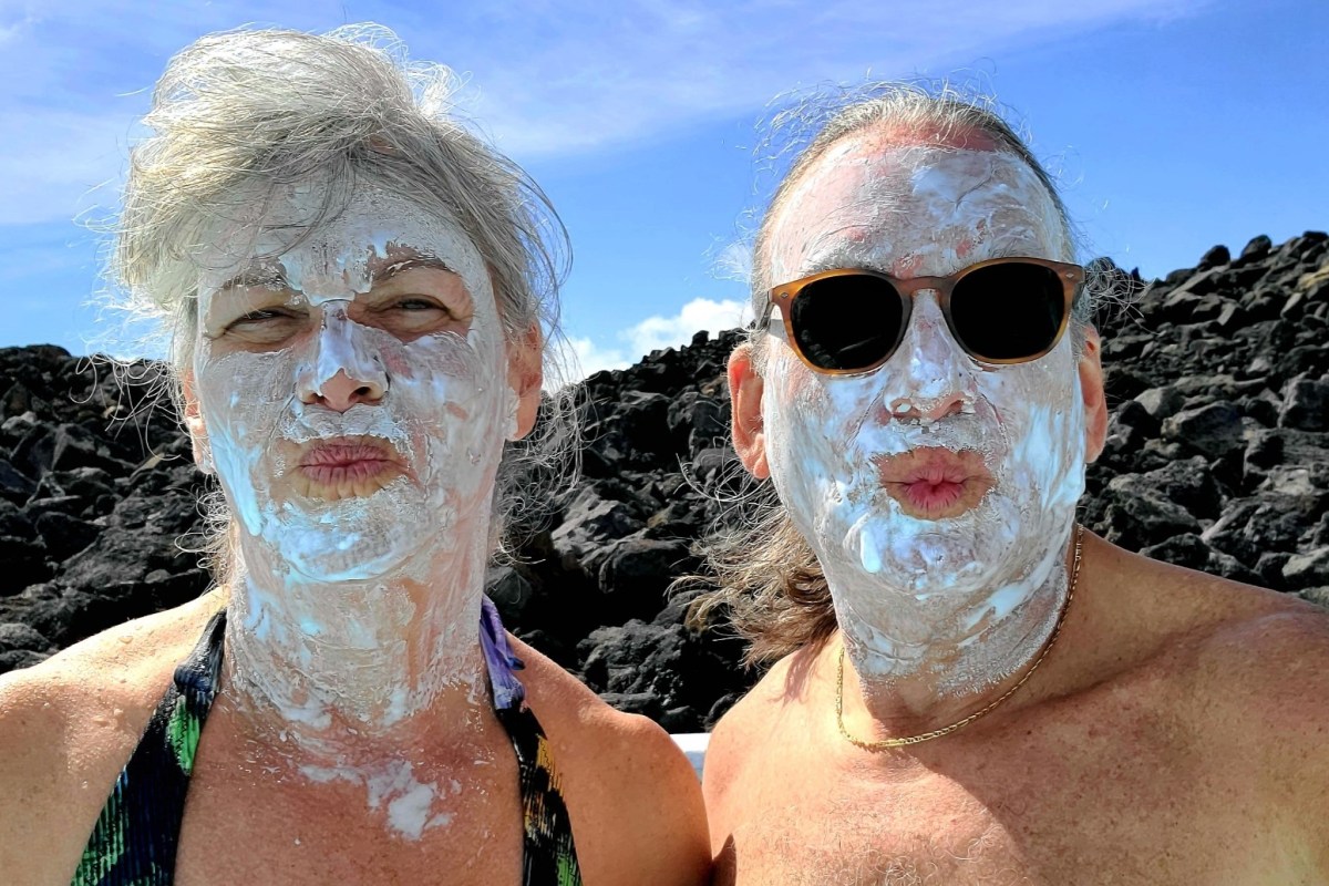 I gripped my phone with one hand and grabbed Leah’s hand with the other, and together we slipped into the warm, milky waters.