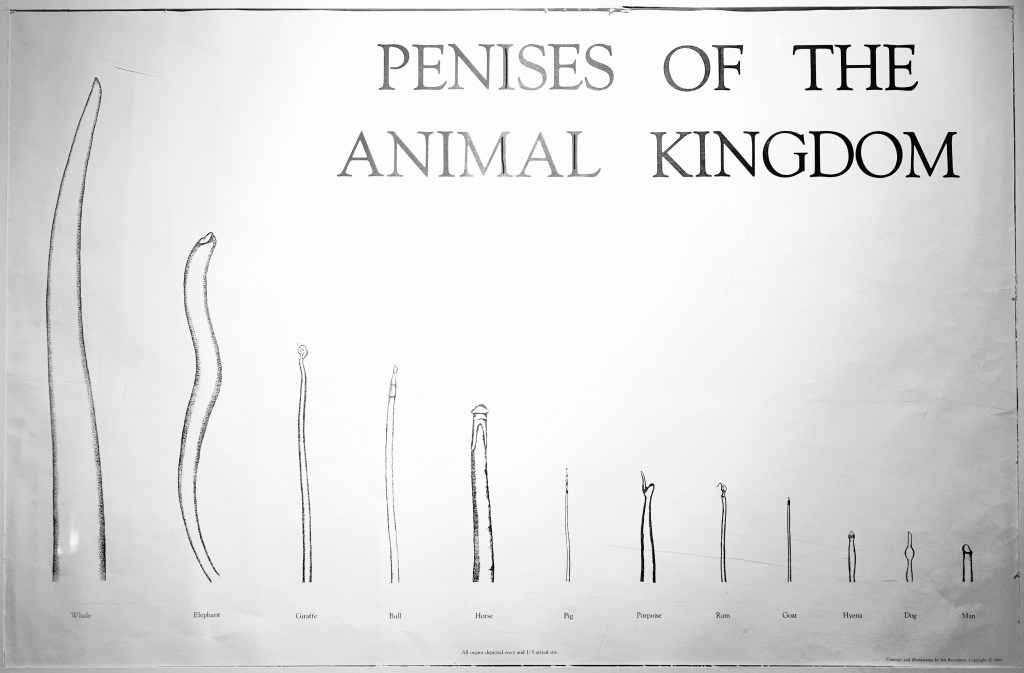 The collection is very large today, as people have sent in specimens. The largest, from a sperm whale, is about 6ft long, while the smallest, from a European mouse, is less than a millimetre and must be looked at through a magnifying glass. We have one human penis on display, from a 95-year-old man who left it to us in his will in 2011. A few well-endowed humans, one from America and one from Germany, have promised to donate theirs when they die. They are young, though, so we will have to wait a while for those.