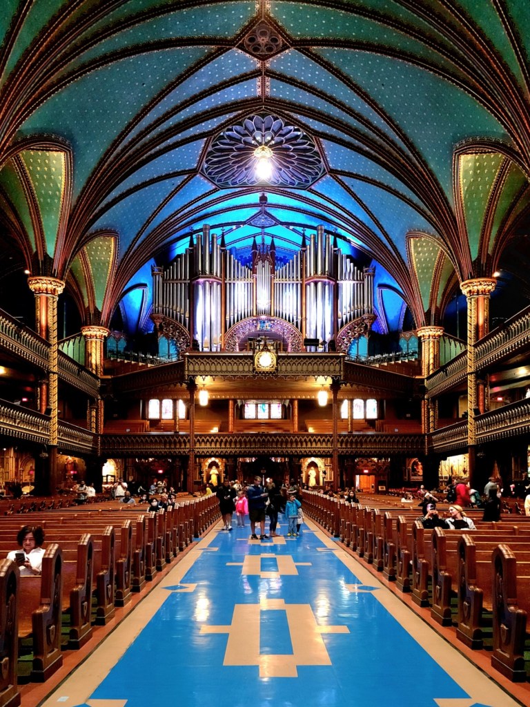 Notre-Dame Basilica was designed by James O’Donnell in a Gothic Revival style, and built behind the original parish church.